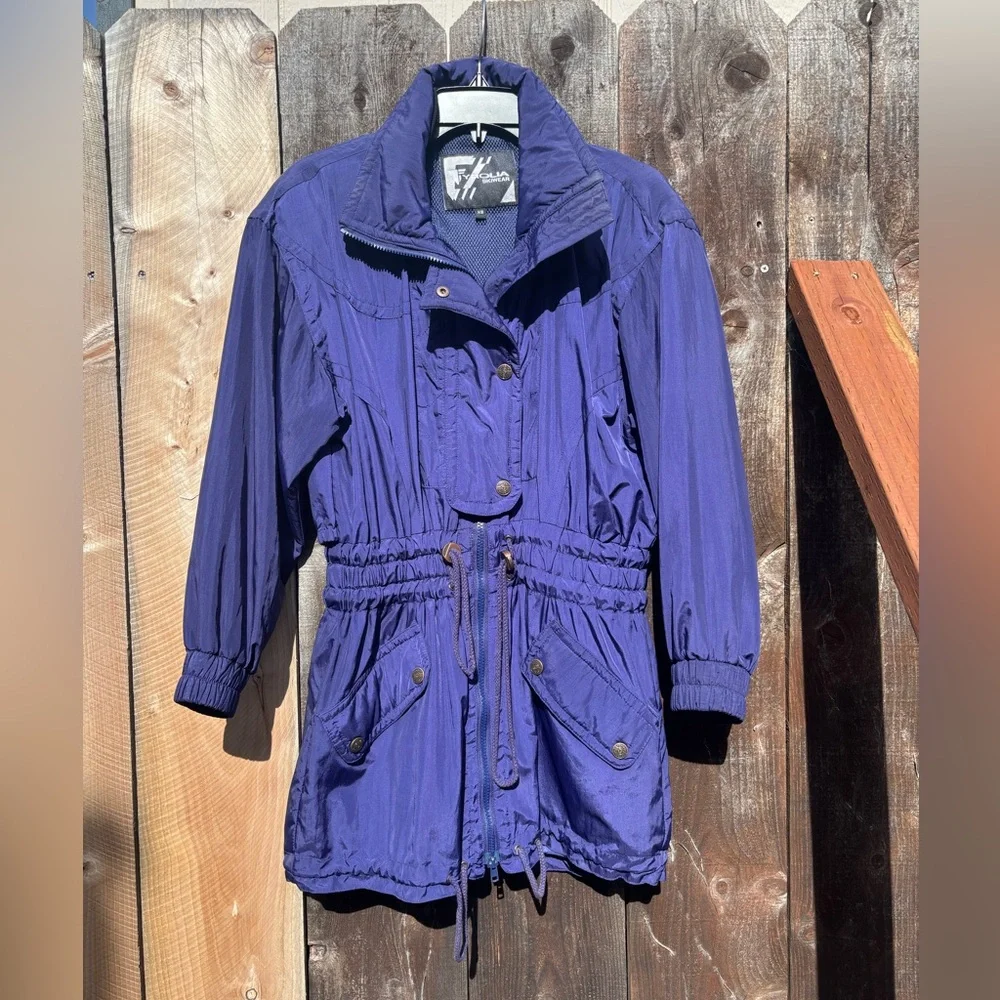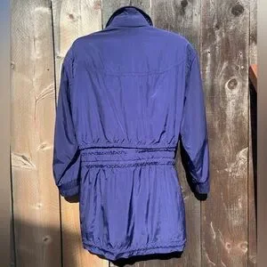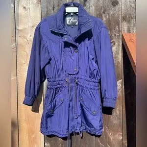 Blue vintage 80s skiing jacket with adjustable waist and hood skiing winter snowboarding ski coat snow jacket retro