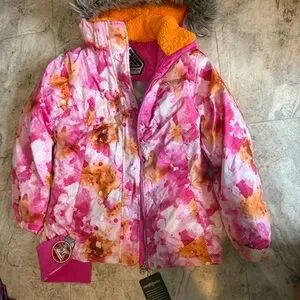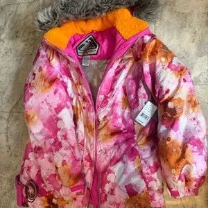 ZeroXposur Girls XL Puffer Jacket Pink Orange Hooded Faux Fur Thermal