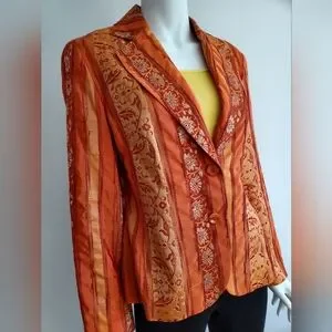 Lightweight jacket. 23" long measured in back from neckline/16" across shoulders, sleeves are 24" long. 2 button front closure with inside breast pocket. Fully lined. Great color!