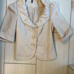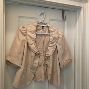 Jacket, Ambitions, cream color peplum short sleeve, with ruffle collar, size M