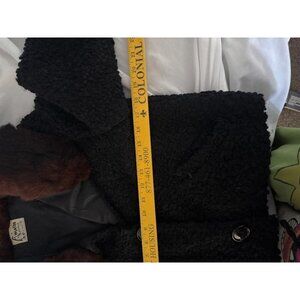 Jacket Black Curly Lamb Brown Fur Collar & Button Closure Small 1950