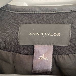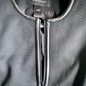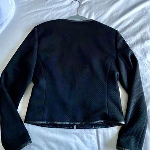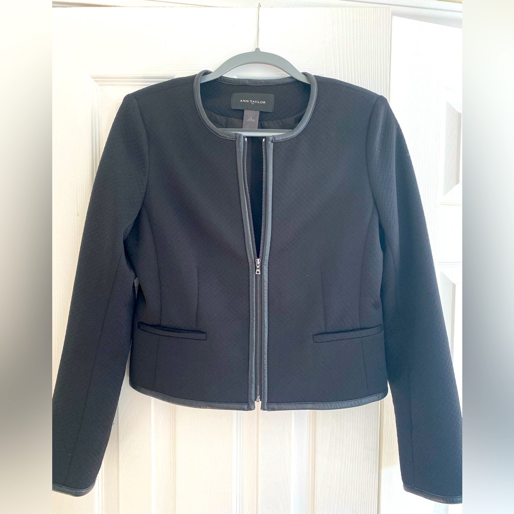 Ann Taylor Suit Jacket. Black with black leather like trim.