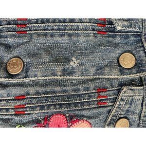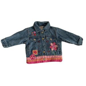 Jacket Coats Girls Jeans Blue Flowers Buttons Long Sleeves 100%Cotton Size 12M