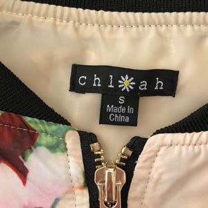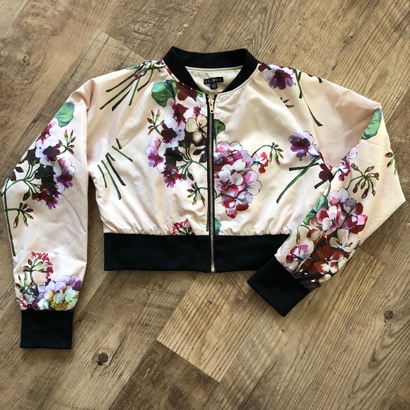 Floral cropped bomber jacket 100% polyester zipper front