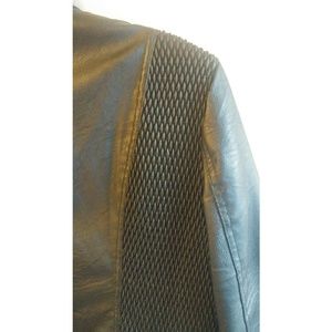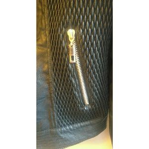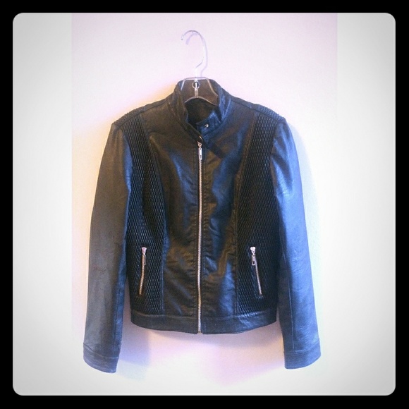 This is a beautiful pre-owned black faux jacket. Please note this jacket has flaws see photos for details right arm as well you sent it however still has plenty of life.