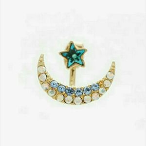 New Jacket Earrings Blue Moon and Star Rhinestone Gold Metal