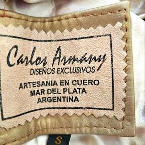 Long sleeves leather jacket with a zipper on top and on the sleeves. Jacket comes with pockets on each side. This gorgeous piece is designed by Carlos Armany from Argentina.