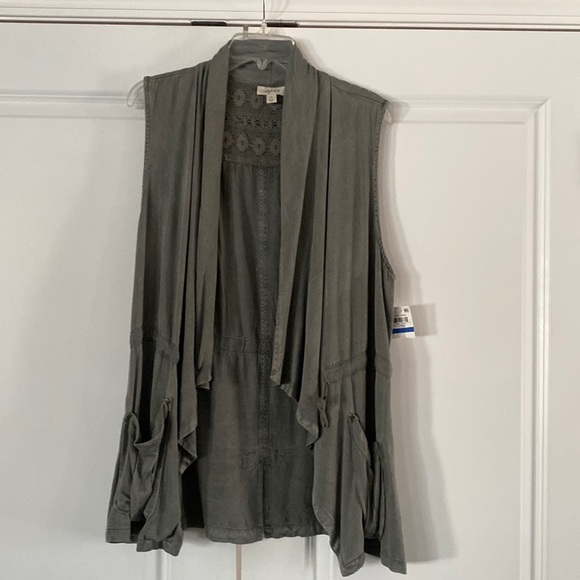 Style & Co sleeveless open front jacket - pockets - drawstring waist