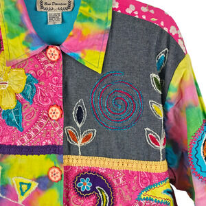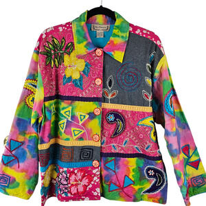 Jacket New Directions tie dye embroidered appliqued bright bold jacket NWT Large