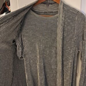Soft layered look with matching jacket and top. Textured material- Rayon - polyester- spandex combination