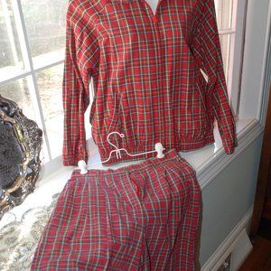 Vintage mid 1990s but properly stored like all my listings, red Plaid 100 per cent cotton set. walking shorts are a 12, Jacket is a Medium