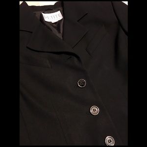 Black jacket with skirt. Great condition but missing 1 button. As shown.