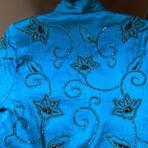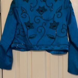 Jacket beaded teal be elegantnt or dress down with jeans teal with blk jet bead