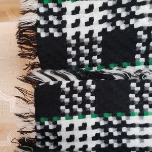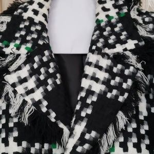 Plaid linen warm jacket great for work or casual green, black and white