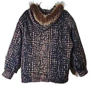 Jacket with Fur Trim Hood by Greg Bell Lightweight Multicolor Size XL, pit to pit 26", length 28", sleeve 21", Front Slit Pockets, in good condition.
