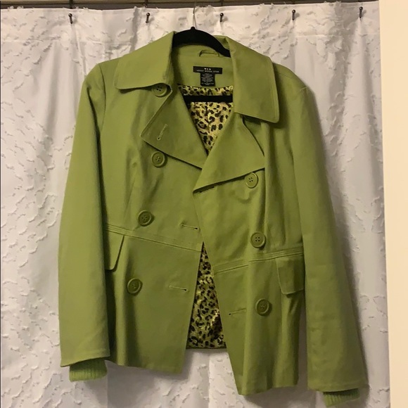 Green coat, to the buttons are a little bit loose but they can be sewn on.