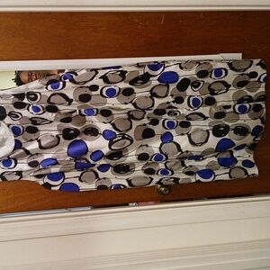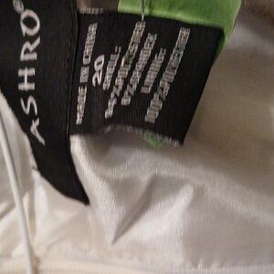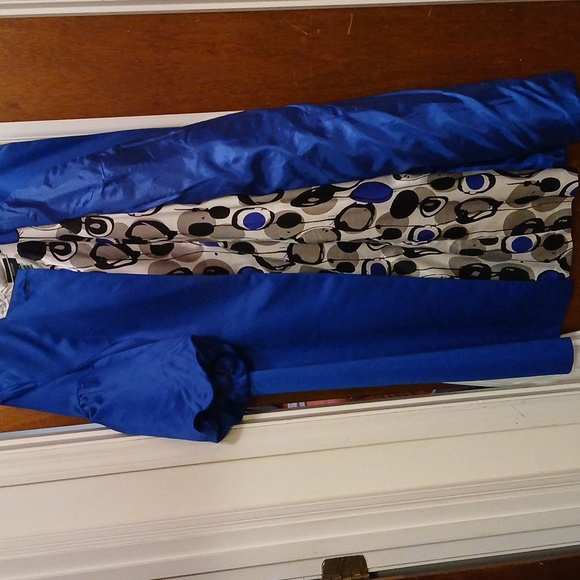 gentry used jacket dress. jacket is 44 in with one button closure. sleeveless multi colored dress is 40 inches in length.