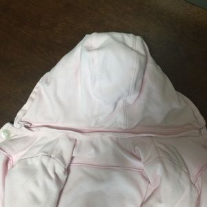 😍 This jacket is awesome! Purchased in Italy, so the sizing is different. Fits baby girl size 0-3 months. Soft and cozy with banded wrists for extra warmth and removable hood. Color is baby pink. Brand is Prenatal. Excellent used condition.