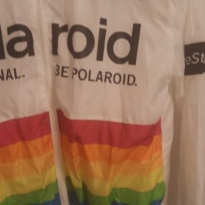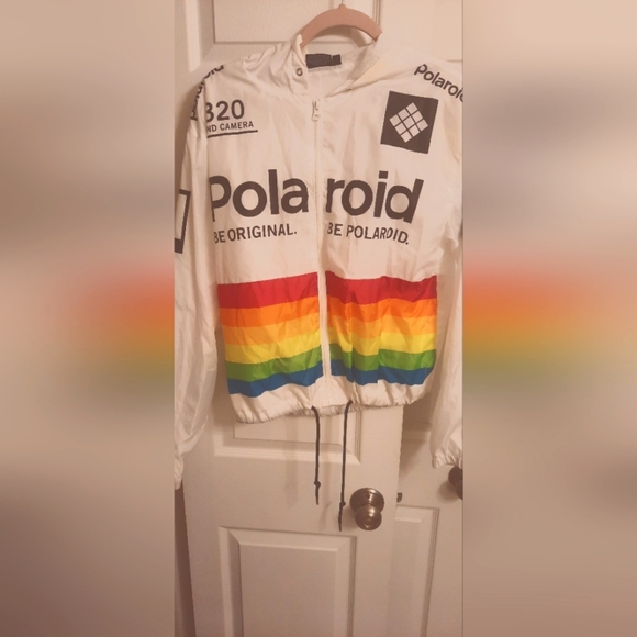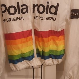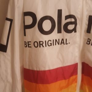 This size Large Polaroid Light Spring Jacket is sure to be a Show stopper the Large fits to me like A Med if your tall. Worn once it it is in perfect condition with zipper and no stains.Not apart of the 20% off you can make a Offer