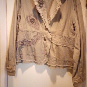 Jacket for fall embroidered with embellishment khaki green L New