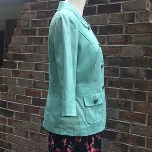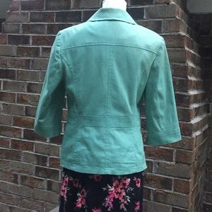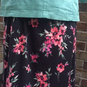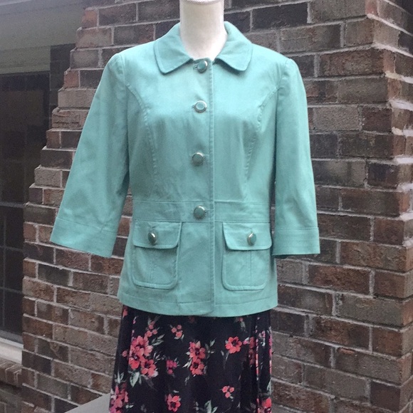 Jacket is about 19” pit-pit. Shoulder to hem about 27”. 3/4 sleeves. EUC. Lined. Not a summer jacket. It’s heavy. A reposh. Too small for me. Washed it and had it pressed. Size L. Skirt has elastic waistband and is 15” unstretched. Faux wrap. About 38” long. Tag says large