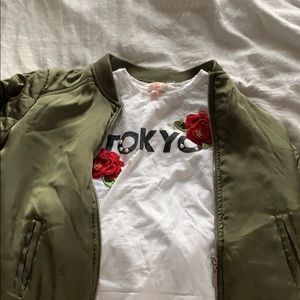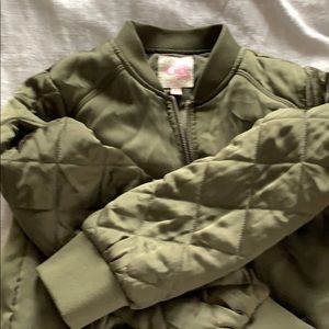 GB from Dillard’s army green military jacket great condition sz L one small spot may come out with a cleaning I havnt tried but did include pic !! Super cute !! T-shirt GB sz m girls T-shirt good condition. Super cute and goes wi th jacket !🌈❤️