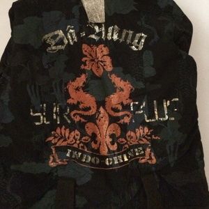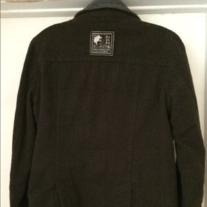 Playful & unique fitted jacket; chocolate brown with leather on collar and thinly lined on end of sleeve. Cute lining of jacket shown on 3rd picture.