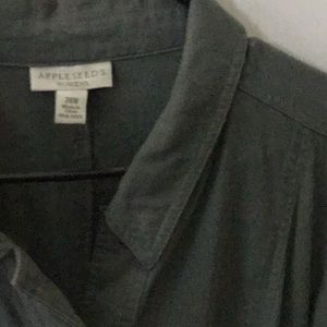 Green linen jacket Appleseeds Women’s size 24 two pockets button up this is sage green length is 28 inches double stitching down seams