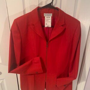 Ladies red jacket/blazer by Harve Bernard Sport. Collar, fitted bodice, lined, zipper closure front! In excellent condition, 100% wool, size 12!