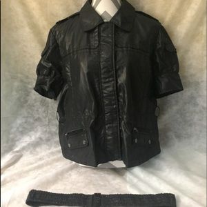 Beautiful wind breaker jacket that can be worn as a blouse or jacket 4 pocket 2 on the sleeves and 2 on lower front and belt at the waist, Styling. Great with Slacks , Tights, Jeans, or Sneaker. It also has a lining.
