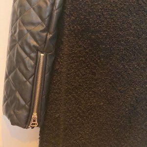 She Inside Black Coat. Length of the coat goes to top of the thigh. Zips in the front. Also has pockets.
