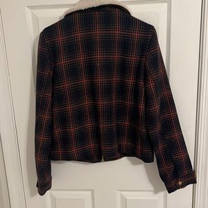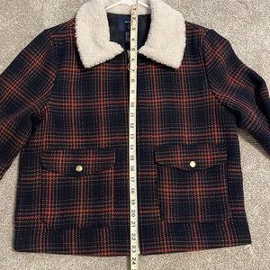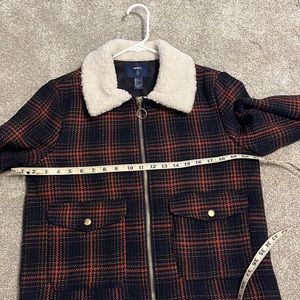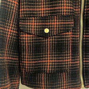 Wear this as a coat or part of your outfit. Gold colored zipper from collar to bottom. Fully lined. Gold buttons on front 2 pockets and sleeves.