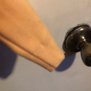 Jacket/Blazer butter soft unlined with attached scarf (can be removed). Slight darkening at end of sleeve that is barely noticeable. Made of polyester/spandex