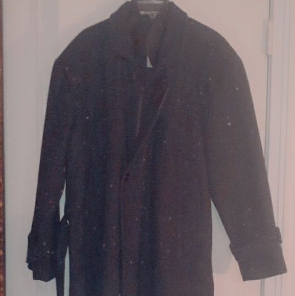 Long smoke gray and black leather coat