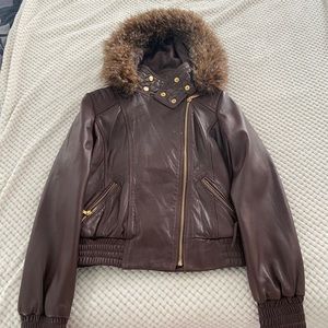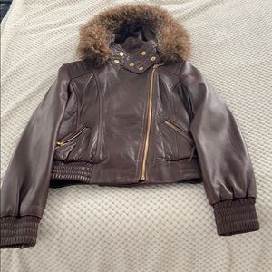 One is a leather jacket and the rest are puffer jackets all size small