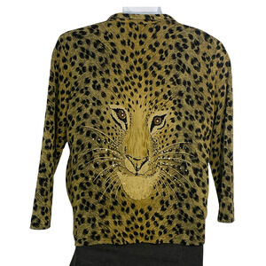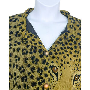 Jackets Galore Sz XL Button Down Jacket w/Collar Cheetah Leopard Print Cat Face