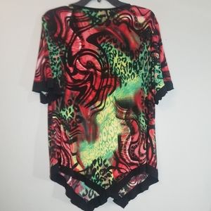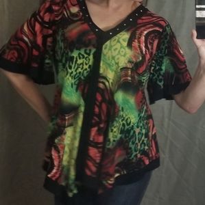 Jackets Galore,size M, Beautiful,colors and design,what a great top to have,and so comfortable,excellent quality and excellent condition,bust size is 21ins and top of the shoulder down the side is 24ins, and from the top of the shoulder to the where it makes a point is 30in