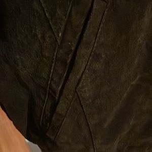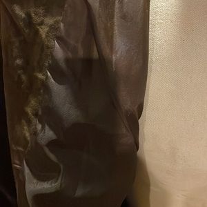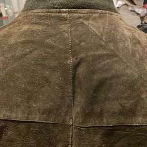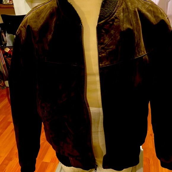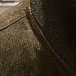 A Jacket with A zipper and a knit collar knit around the arm of the sleeve and also around the bottom of the jacket