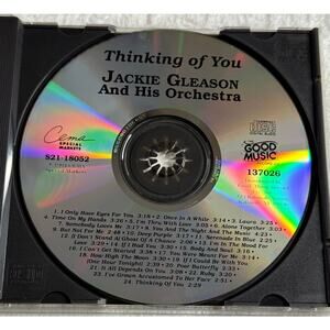 Jackie Gleason and His Orchestra – Thinking of You (1994, Good Music / CEMA Special Markets, CD #137026, S21-18052). This compilation features 24 lush orchestral tracks perfect for easy listening, jazz, and big-band fans. Includes classics such as I Only Have Eyes for You, Once in a While, Laura, Body and Soul, How High the Moon, and the beautiful title track Thinking of You.