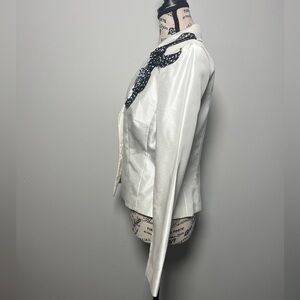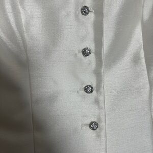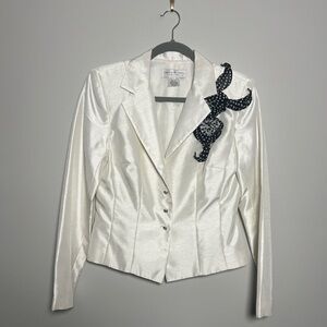 Jackie John White Satin Blazer Bow Detail Rhinestone Buttons Classy