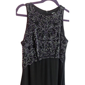 Jackie Jon Black Beaded Mesh Sleeveless Formal Maxi Gown Dress Size 6 A1