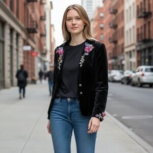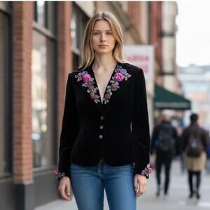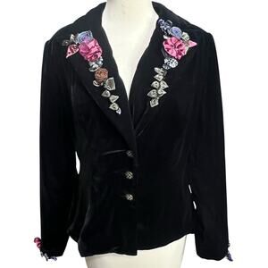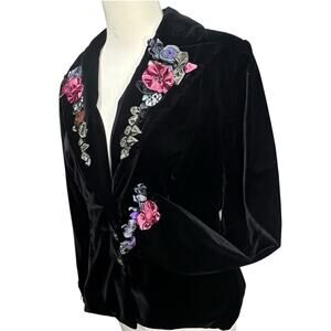 Jackie Jon Vintage Blazer Women 8 Black Velvet Floral Romantic Jacket Whimsygoth