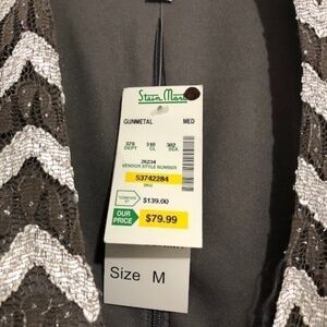Jackie Jon New York Women's Silver & Gray Shimmery Zip-Up Blouse (Size M) NWT