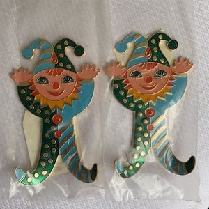 Listing is for 1 children’s wall hook acquired in the Soviet Union in 1990. Hole at the top for a nail or screw. Clown’s feet extend out as the hooks. 🤡 made of some kind of metal. Approximate dimensions: 5” tall, 3.25” across. Two are available, feel free to make us an offer for both!