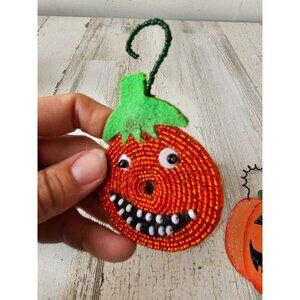 Jack-o-lantern pumpkin beaded ornament plush glitter set Halloween tree