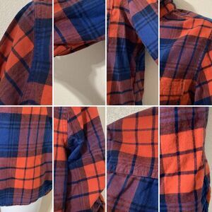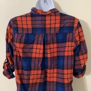 Jack's Girlfriend Blue Orange Plaid Flannel Cotton Country Button Up Shirt Small