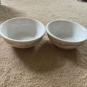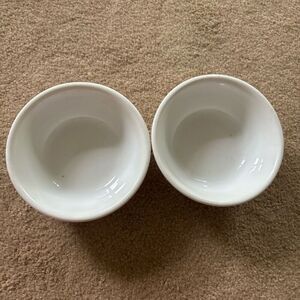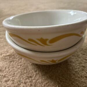 Jackson China 2 White & Gold 5 3/4” Wide Restaurant Ware Soup Bowls. Good condition, no chips or cracks. A little wear. See photos.