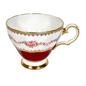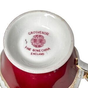 Jackson Gosling Bone China Tea Cup Grosvenor Footed Burgundy Gold Trim England