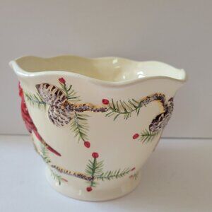 Jackson Perkins Ceramic Cardinal Planter - Hand-Painted Bird & Pinecone Design -