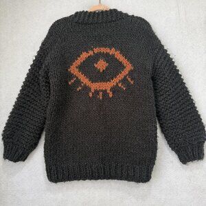 Jackson Rowe Cardigan Sweater Womens Small Black Chunky Knit Zip Up Eye Graphic